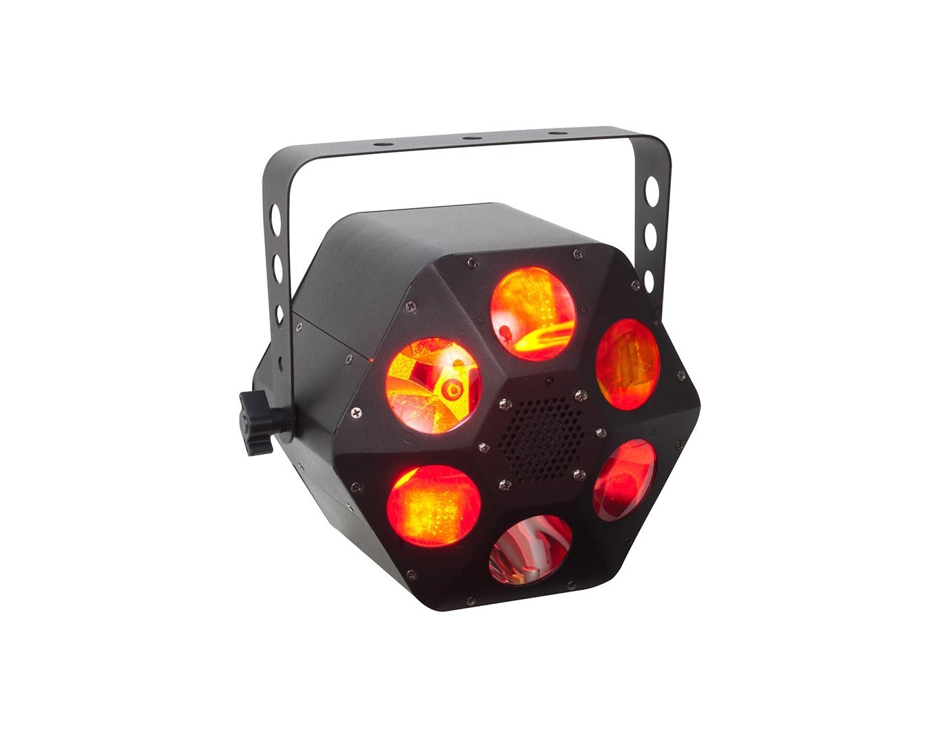 Die Steuerung kann automatisch, musikgesteuert oder professionell per DMX erfolgen. Somit eignet sich der Quad Phase HP sowohl für einfache Setups als auch für den Einsatz in bestehende Lichtkonzepte.