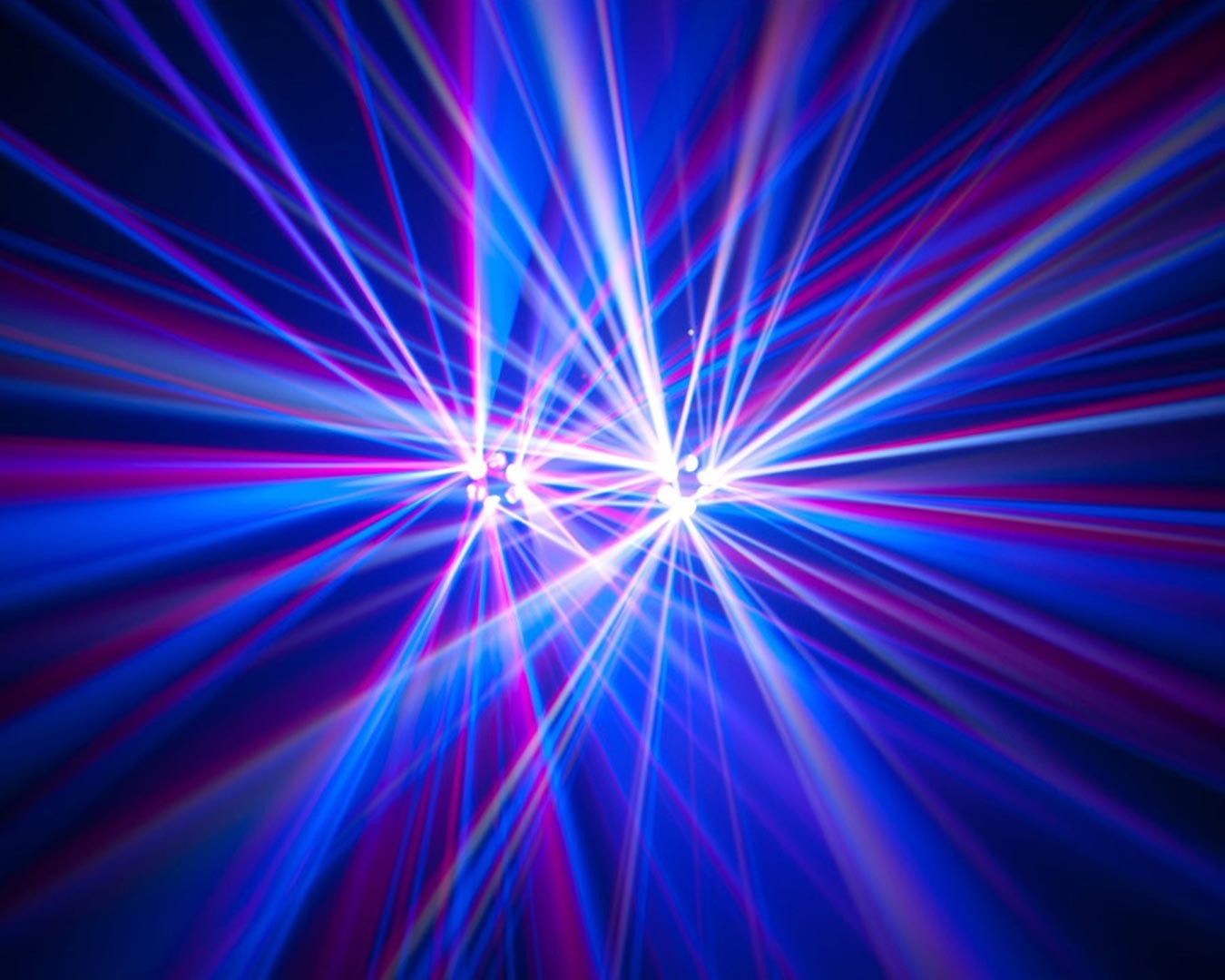 Das Effektlicht erzeugt mehrere farbige Strahlen gleichzeitig, die sich dynamisch im Raum bewegen. Dadurch entstehen eindrucksvolle Effekte, die Musik und Stimmung optimal unterstützen – ideal für DJ-Sets, Partys und Tanzveranstaltungen.