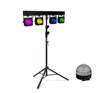 Das Set besteht aus aufeinander abgestimmten Lichteffekten und sorgt für bewegte Lichteffekte auf der Tanzfläche. Durch den kompakten Aufbau ist das Budget Lichtset schnell einsatzbereit und auch ohne technische Vorkenntnisse leicht zu bedienen.